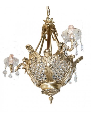 Φωτιστίκο με τρία φώτα εξωτερικά και δυο μέσα από τα κρύσταλλα στο κέντρο του φωτιστικού. Διακοσμήμενο με κρύσταλλα ή με γυαλιά. Μοναδικό φωτιστικό για να διακοσμήσει τον χώρο σας. Ύψος 70 εκ., πλάτος 60 εκ.