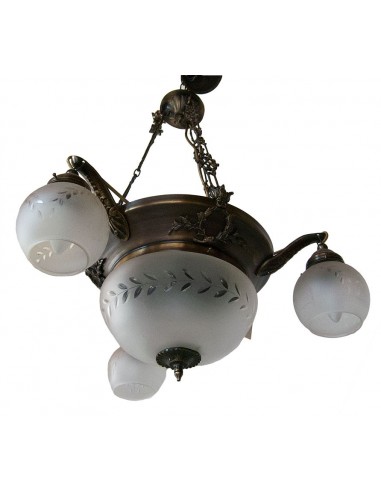 Φωτιστίκο vintage κρεμαστό με πέντε φώτα απο πάφυλα ορειχάλκινο με διακόσμηση απο μασίφ ορειχάλκινα μοτίφ και χειροποίητα ταγιαριστά γυαλία. Ύψος 70 εκ, πλάτος 60 εκ.