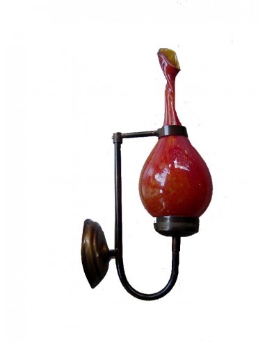 Απλίκα από μασίφ μπρούτζο με σκαλιστή βάση, με φυσητό γυαλί σε σχέδιο φλόγα